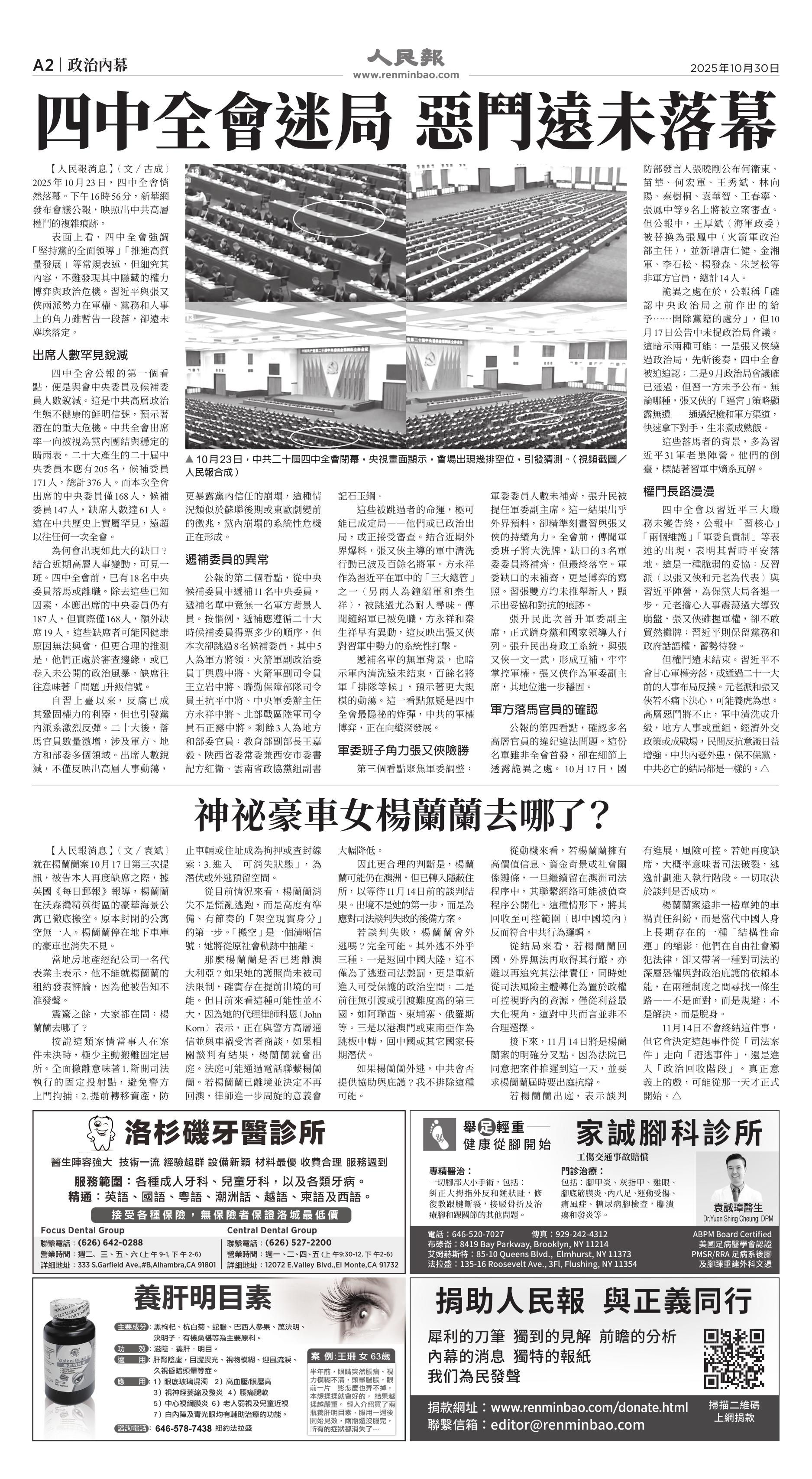 (2025年10月30日)A2版: 政治內幕