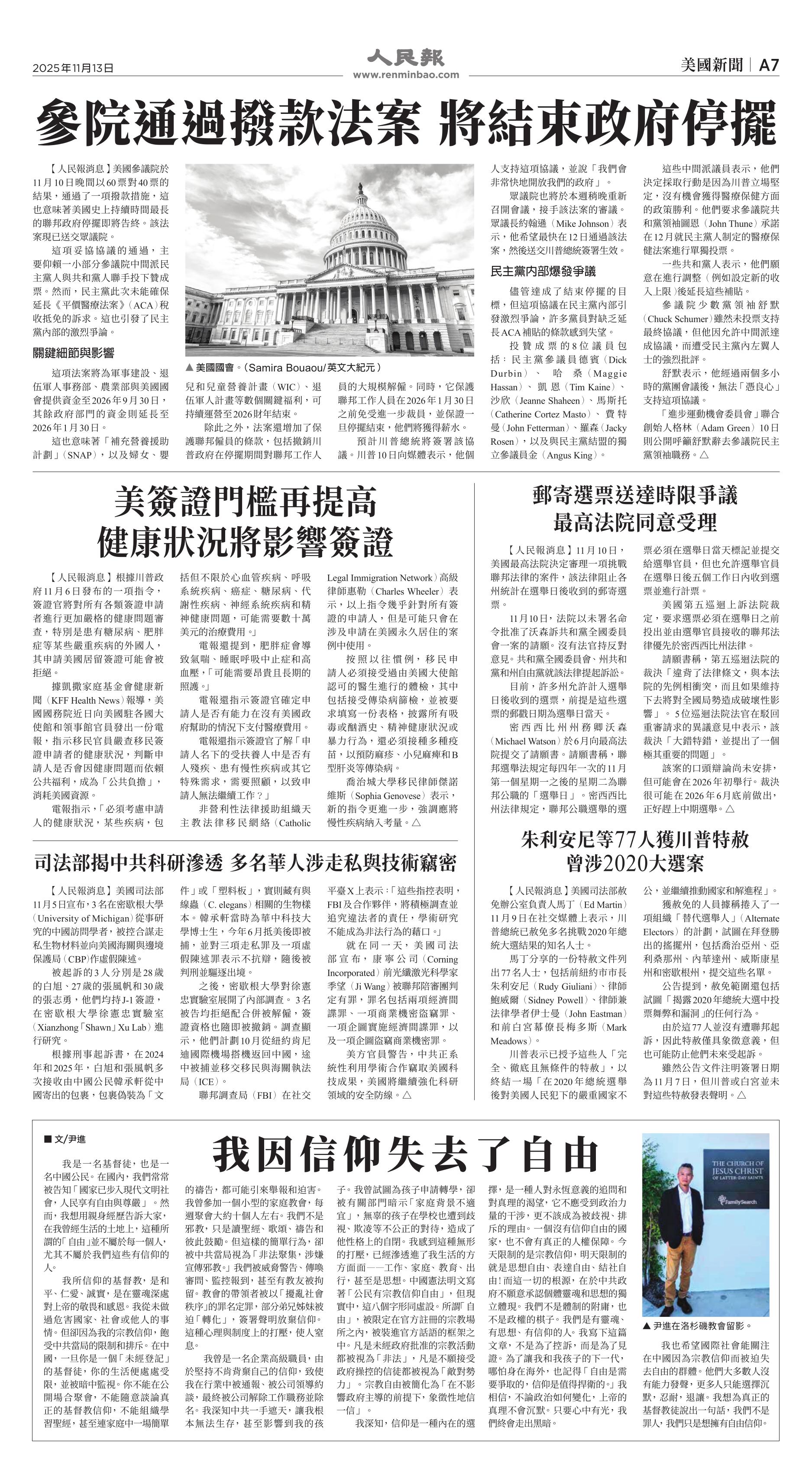 |<<  <<前一页 < 返回 第1038期  (2025年11月13日)A7版: 美国新闻 下一页>>  >>|