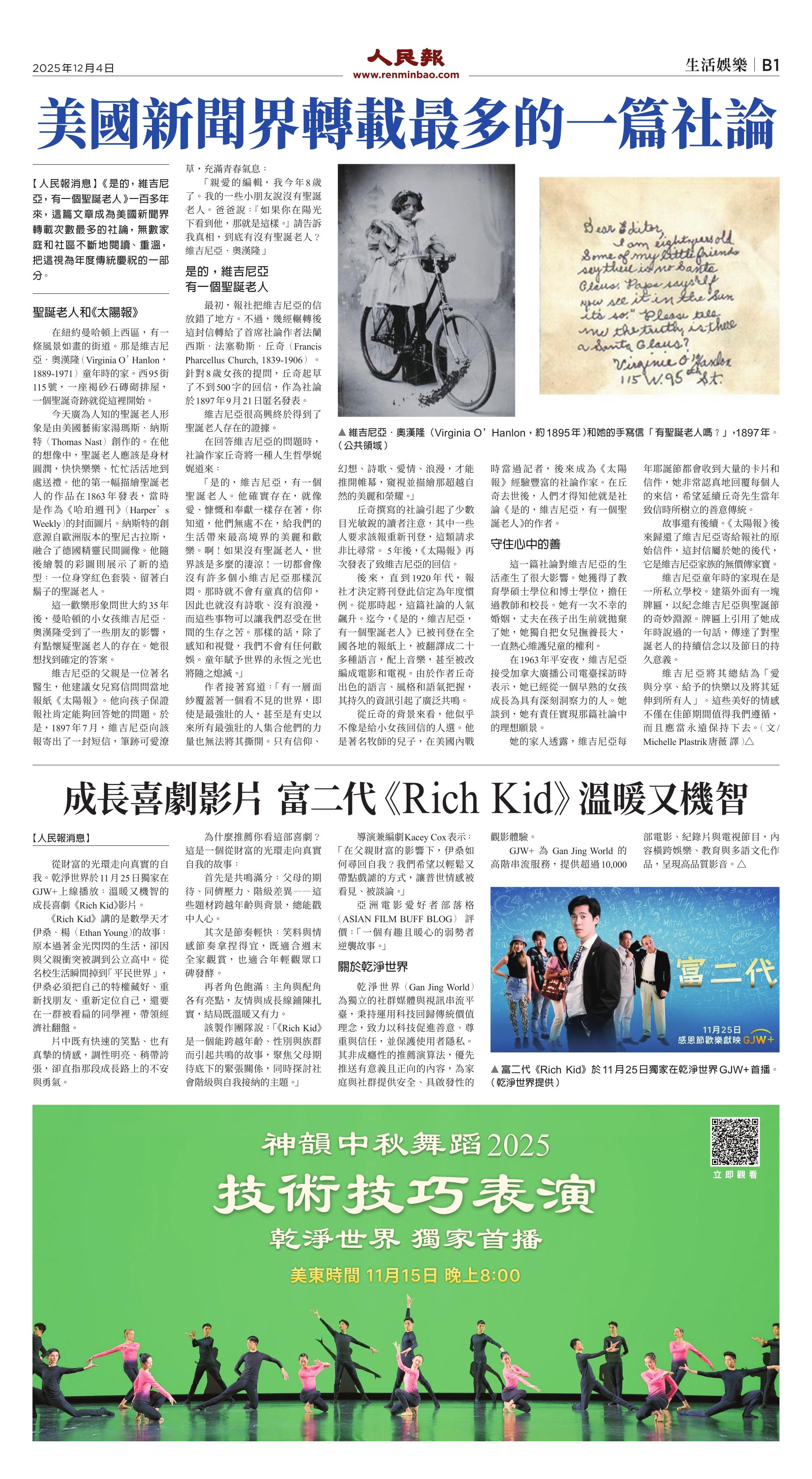 |<<  <<前一页 < 返回 第1041期  (2025年12月4日)B1版: 生活娱乐 下一页>>  >>|