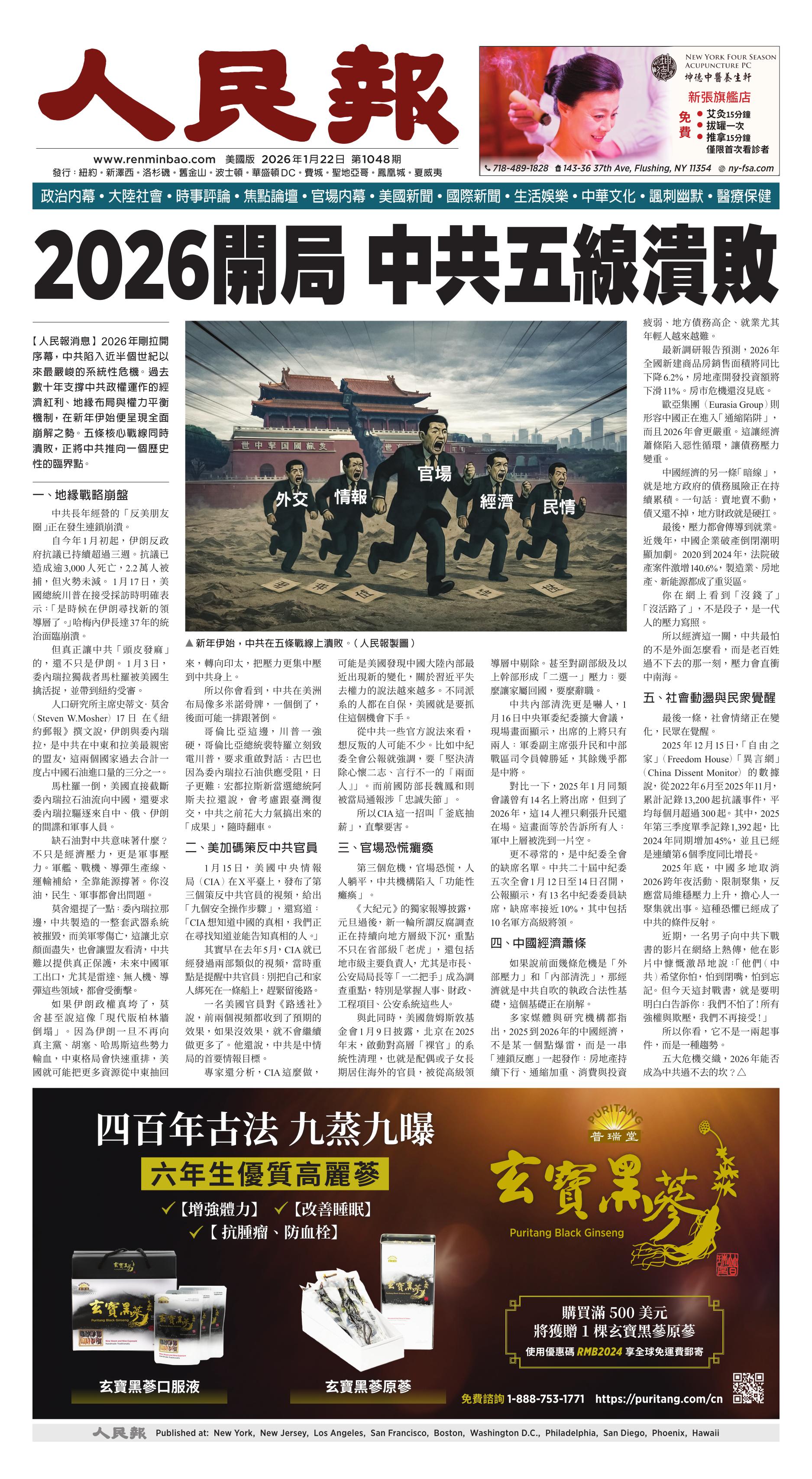 (2026年1月22日)A1版: 头版