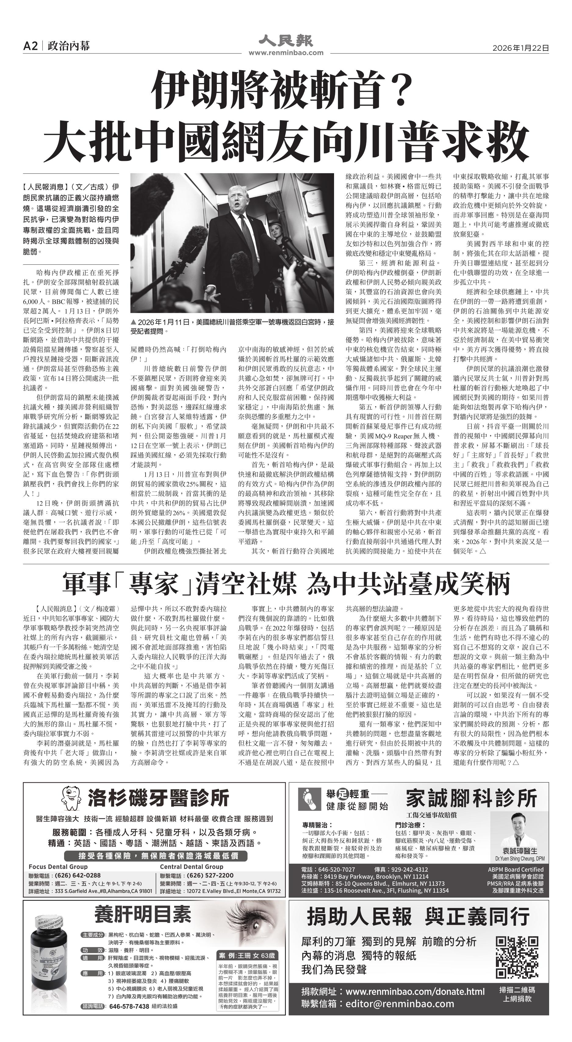 |<<  <<前一页 < 返回 第1048期  (2026年1月22日)A2版: 政治内幕 下一页>>  >>|