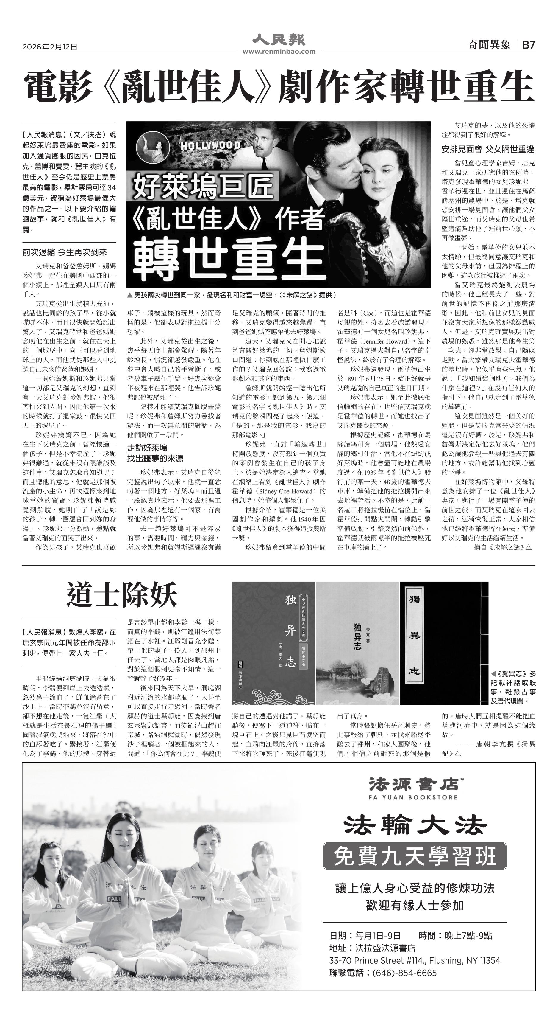 |<<  <<前一页 < 返回 第1051期  (2026年2月12日)B7版: 奇闻异象 下一页>>  >>|