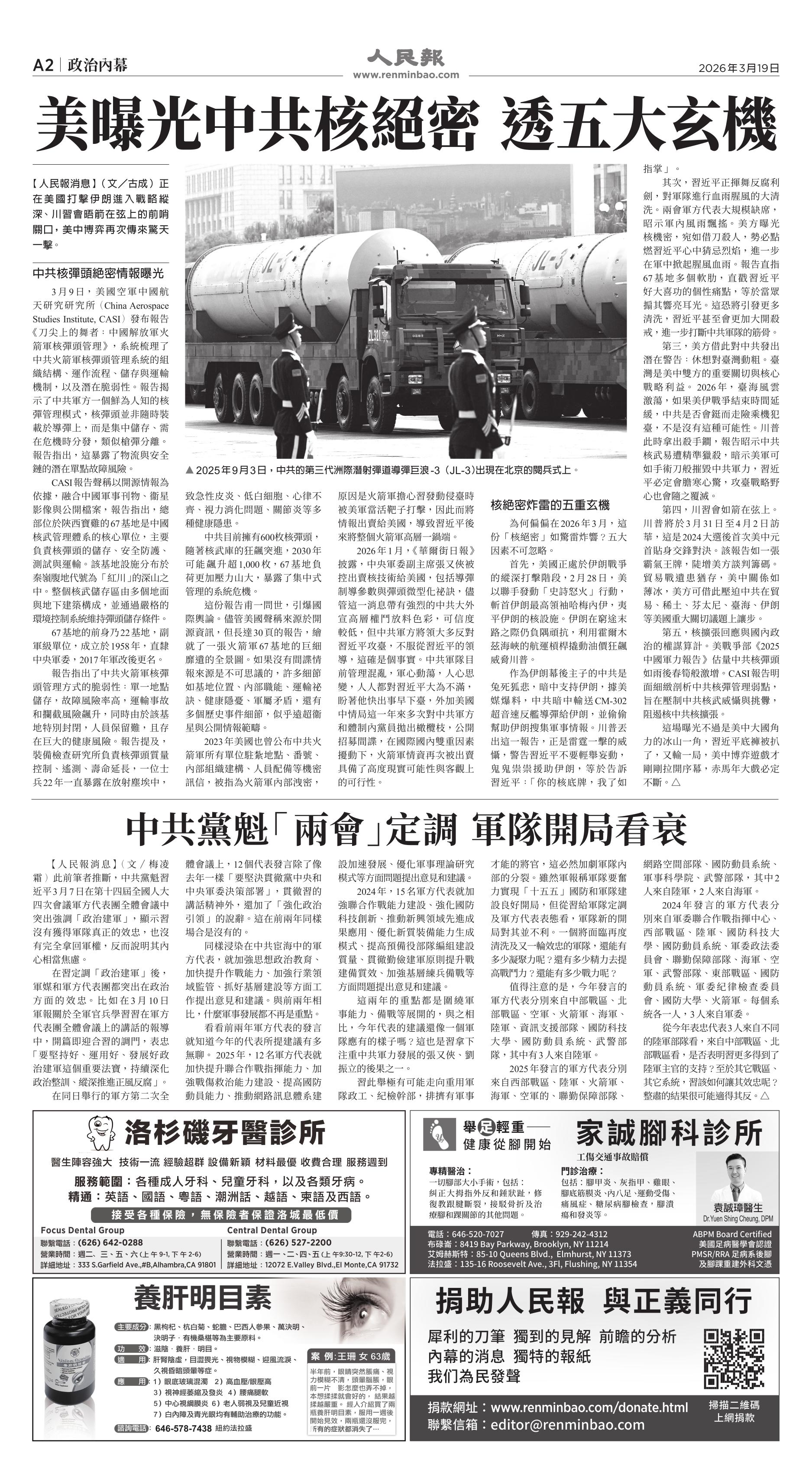 (2026年3月19日)A2版: 政治内幕