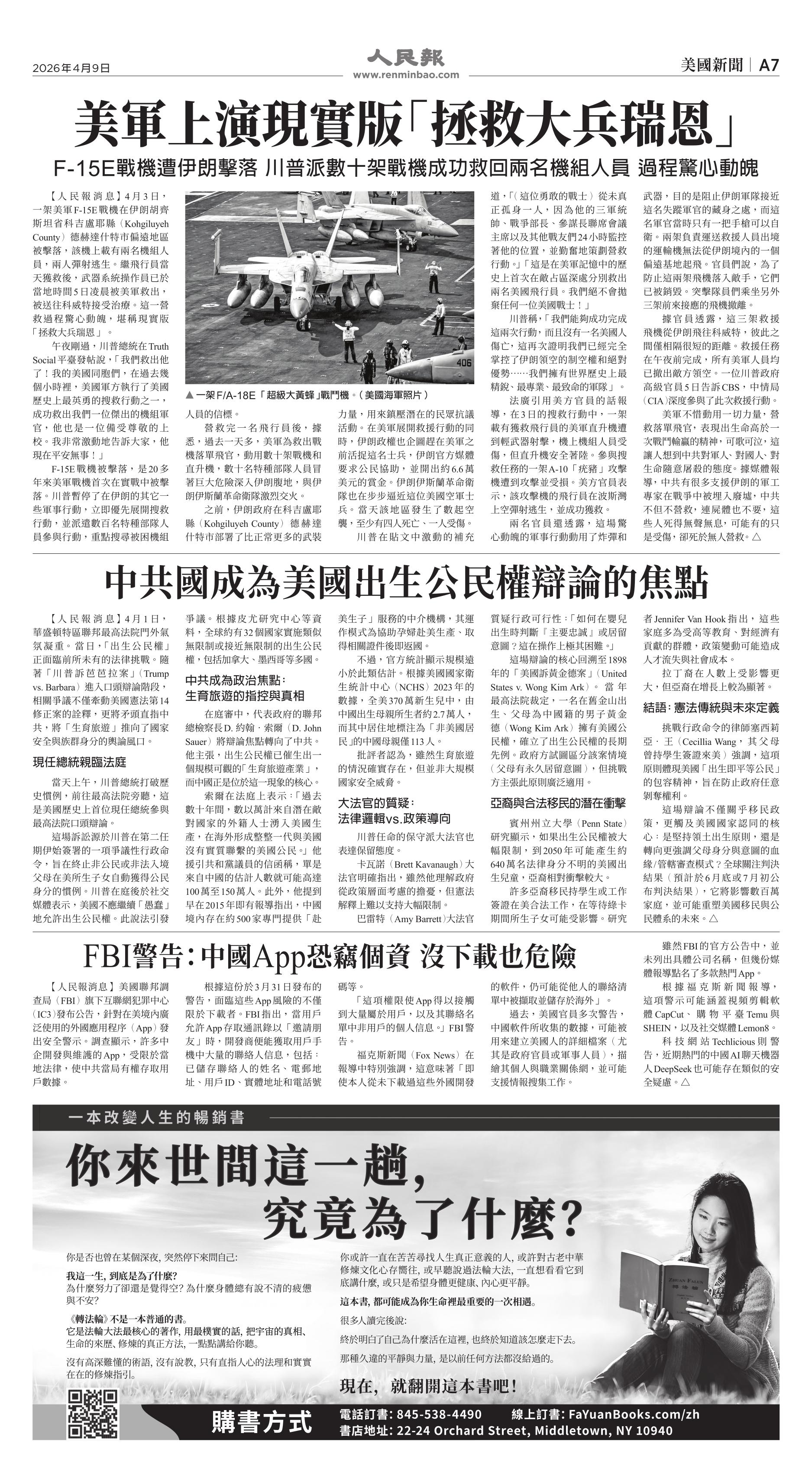 |<<  <<前一頁 < 返回 第1059期  (2026年4月9日)A7版: 美國新聞 下一頁>>  >>|