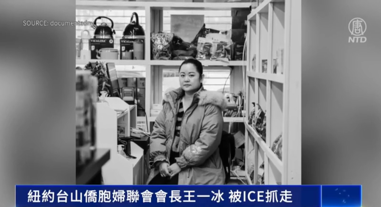 |  | 为中领馆工作?纽约台山侨胞妇联会长被抓(图) |  |  |  |  纽约台山侨胞妇女联合会会长王一冰。(视频截图)【人民报消息】(人民报记者孔屏综合报导)中秋节前夕,在纽约华人社区相当活跃的台山侨胞妇女联合会会长王一冰,被美国移民及海关执法局(ICE)逮捕。她被怀疑“为中领馆工作”。目前被关押于南路易斯安那州 ICE 拘留中心,恐面临遣返回中国。