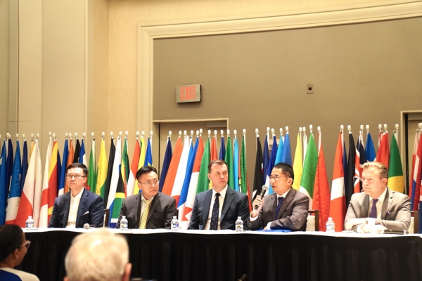 2025年10月3日,國際扶輪社在華盛頓DC的威斯汀酒店放映獲獎紀錄片《國有器官》。圖為放映會後的專家與現場觀眾的互動環節。(張奕/大紀元)
