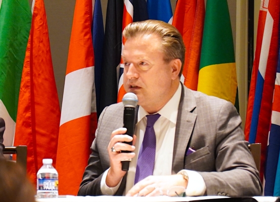 2025年10月3日,國際扶輪社在華盛頓DC的威斯汀酒店放映獲獎紀錄片《國有器官》。圖為美國天主教大學從事宗教研究的圖書管理員塔拉斯·茲維爾(Taras Zvir)。(張奕/大紀元)