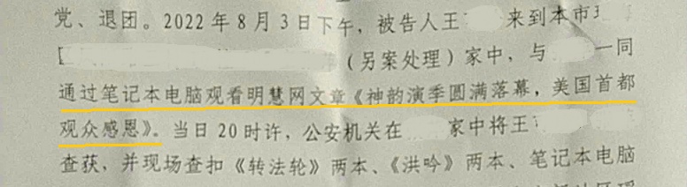 這是當局將觀看神韻報導作為所謂「犯罪證據」,進行非法抓捕和判刑的一個典型迫害案例。