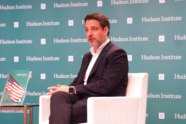 2025年11月13日,美国国防部旗下的国家地理空间情报局(NGA)前首席技术官(CTO)和能力副主任、美国前高级情报官员安东尼·文奇(Anthony Vinci)博士,在华府智库哈德逊研究所,介绍其新书《第四次情报革命:间谍活动的未来与拯救美国的战斗》(The Fourth Intelligence Revolution: The Future of Espionage and the Battle to Save America)。(李辰/大纪元)
