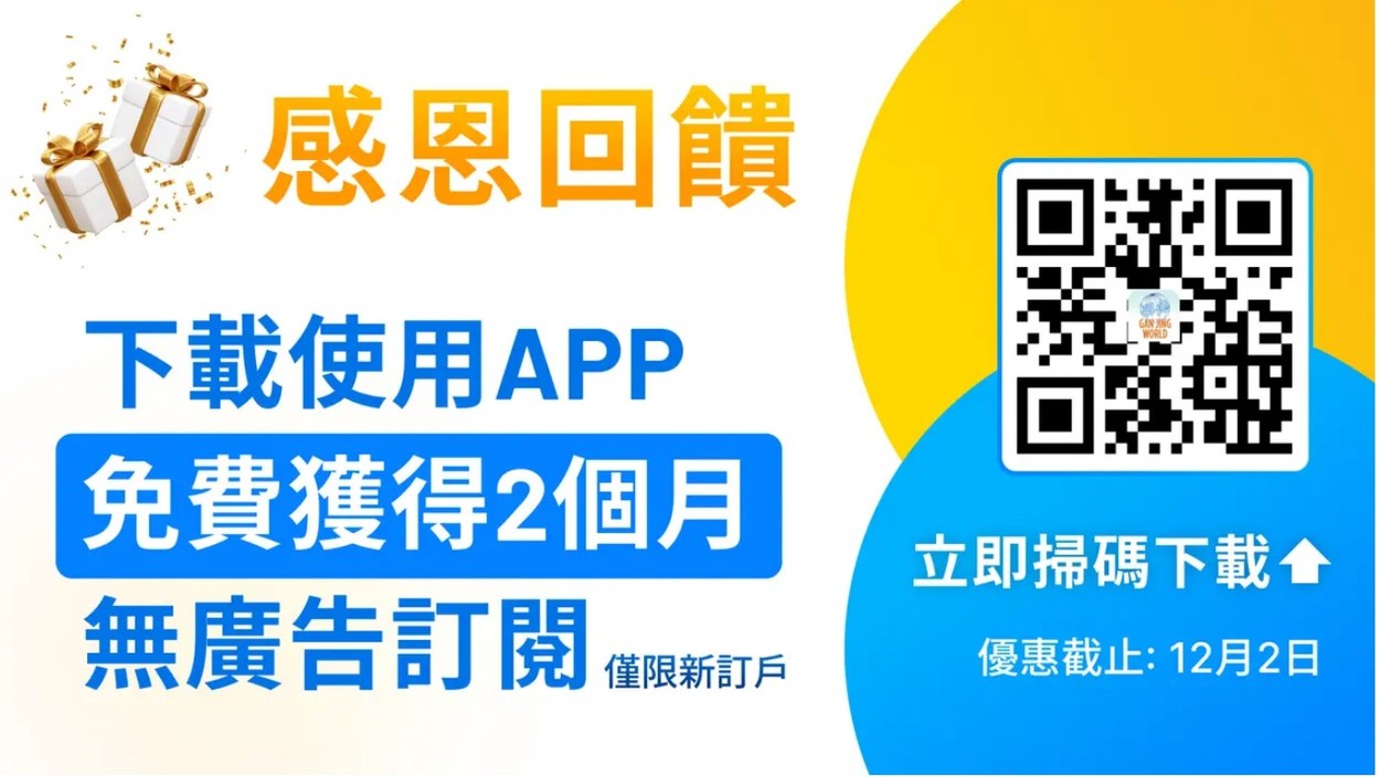 此限時優惠適用於目前尚無有效訂閱的用戶,優惠期至2025年12月2日結束。