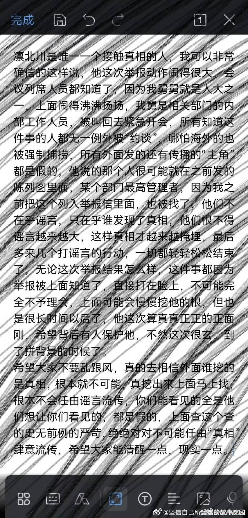 有一名知情者發帖透露,凜北川是唯一一個接觸真相的人,我可以確信的說,他這次舉報動作鬧得太大,會議列席人員都知道了。因為我舅是相關部門的內部工作人員,被叫回去緊急開會,所有知道這件事的人都無一例外被「約談」。