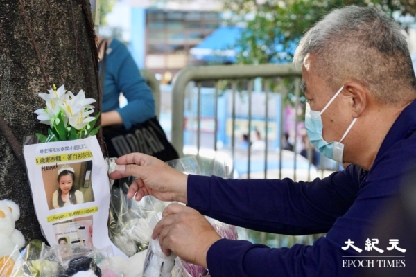 2025年11月29日,市民到火災現場附近悼念。(余剛/大紀元)