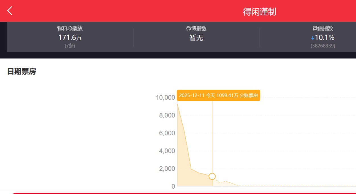《得闲谨制》票房从第一天的1亿到6700万,再到2000万,走势如同过山车。(网络截图)