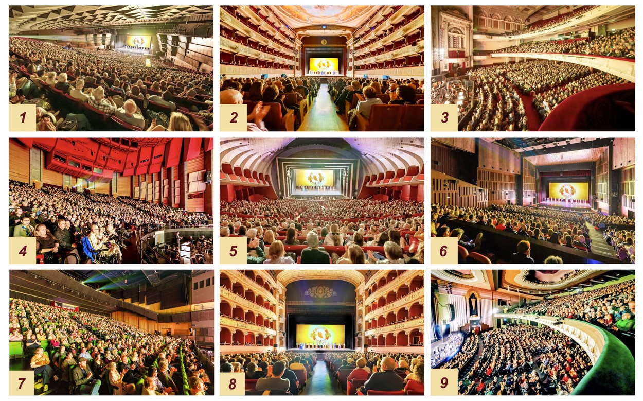 神韵艺术团2025演季在欧洲演出的盛况。(大纪元合成)