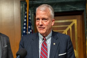 2025年11月20日,美国国会及行政当局中国委员会(CECC)主席、阿拉斯加州共和党参议员丹·苏利文(Dan Sullivan)在美国国会山庄听证会上发言。(Madalina Kilroy/英文大纪元)