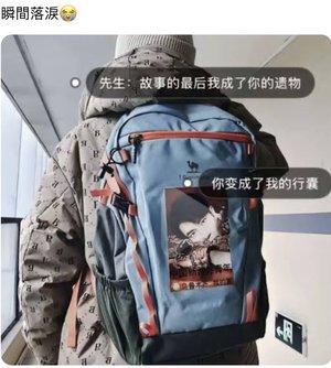 一个印有于朦胧照片的背包,让网友瞬间落泪。(网络图片)
