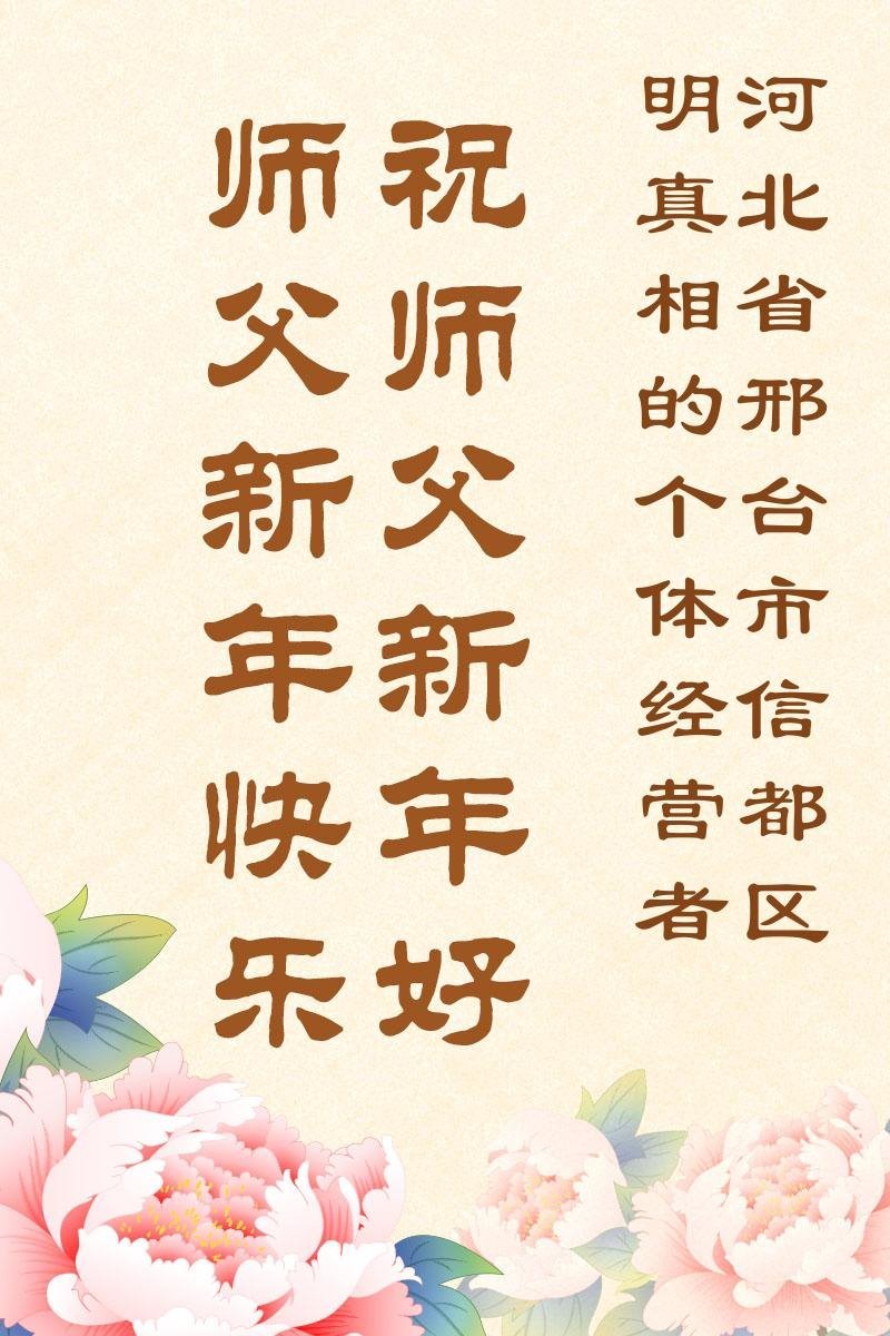 河北省邢台市信都区明真相的个体经营者说:「尊敬的大法师父,祝您新年快乐!