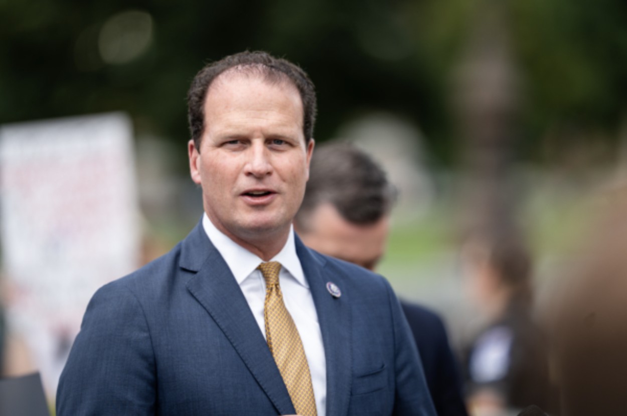 紐約州國會眾議員派特‧瑞安(Pat Ryan)在華盛頓國會山附近的國家廣場(National Mall)舉行的法輪功反迫害26週年大型集會上發言。(李莎/大紀元)