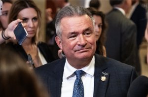 2025年5月15日,在華盛頓的國會山莊,美國眾議員唐‧培根(Don Bacon)參加共和黨就和解法案舉行的會議後回答記者提問。(Madalina Vasiliu/大紀元)