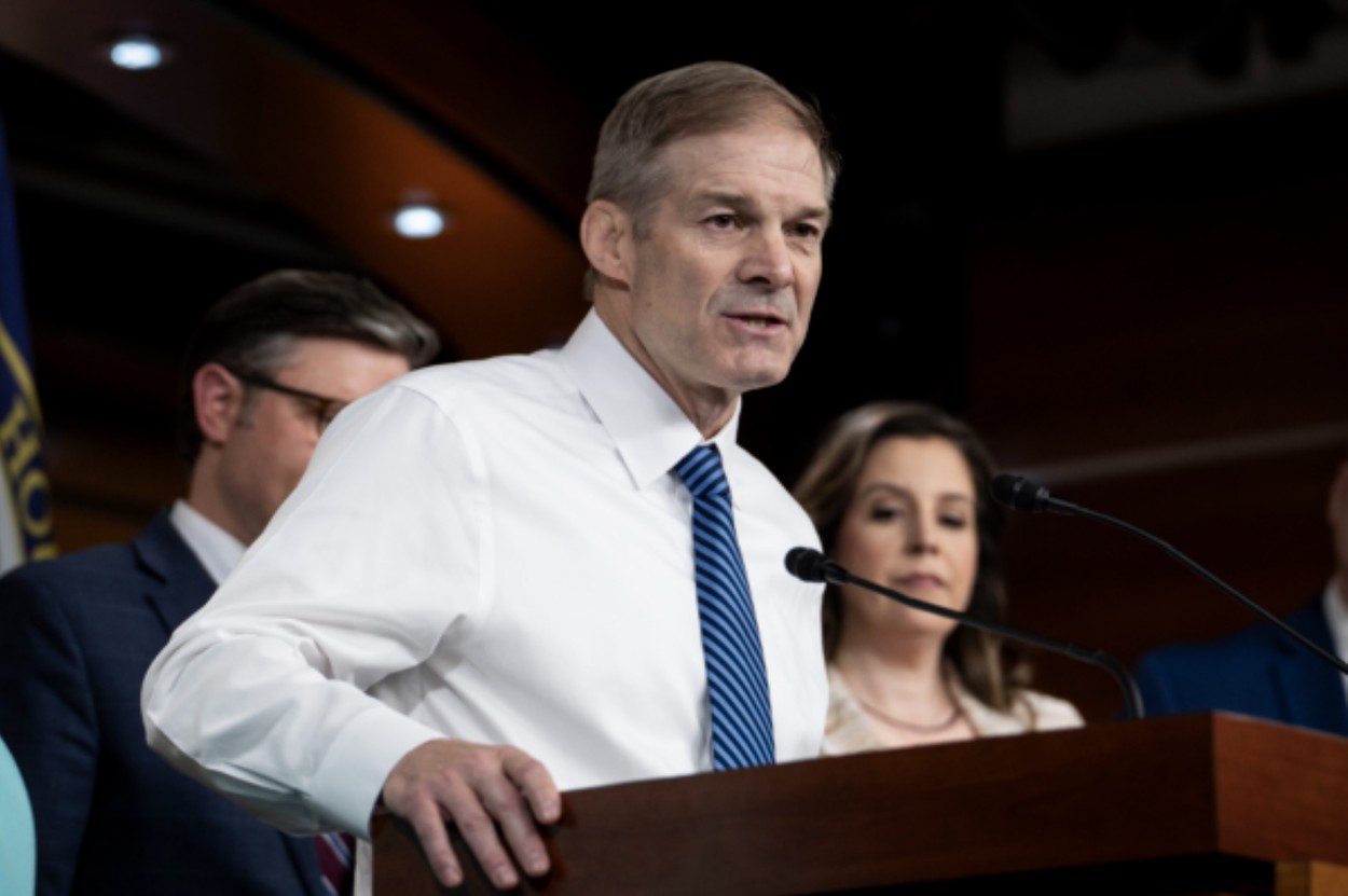 2024年4月30日,美國國會眾議院司法委員會主席、共和黨籍聯邦眾議員吉姆‧喬丹(Jim Jordan)在國會大廈舉行的記者會上發言。(Madalina Vasiliu/英文大紀元)