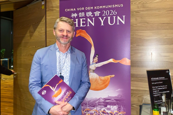 2026年1月22日晚,美國神韻巡迴藝術團在奧地利維也納市政廳劇院F大廳(Wiener Stadthalle, Halle F)上演了今年當地首場演出。食品零售家族企業老闆Johannes Supper 觀看了演出。(黃芩/大紀元)