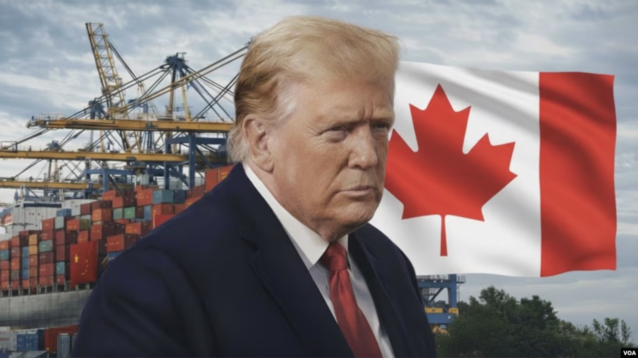 圖示:川普總統警告說,加拿大若成為廉價中國產品湧入美國的「卸貨港」,將對其加徵100%關稅。(VOA)