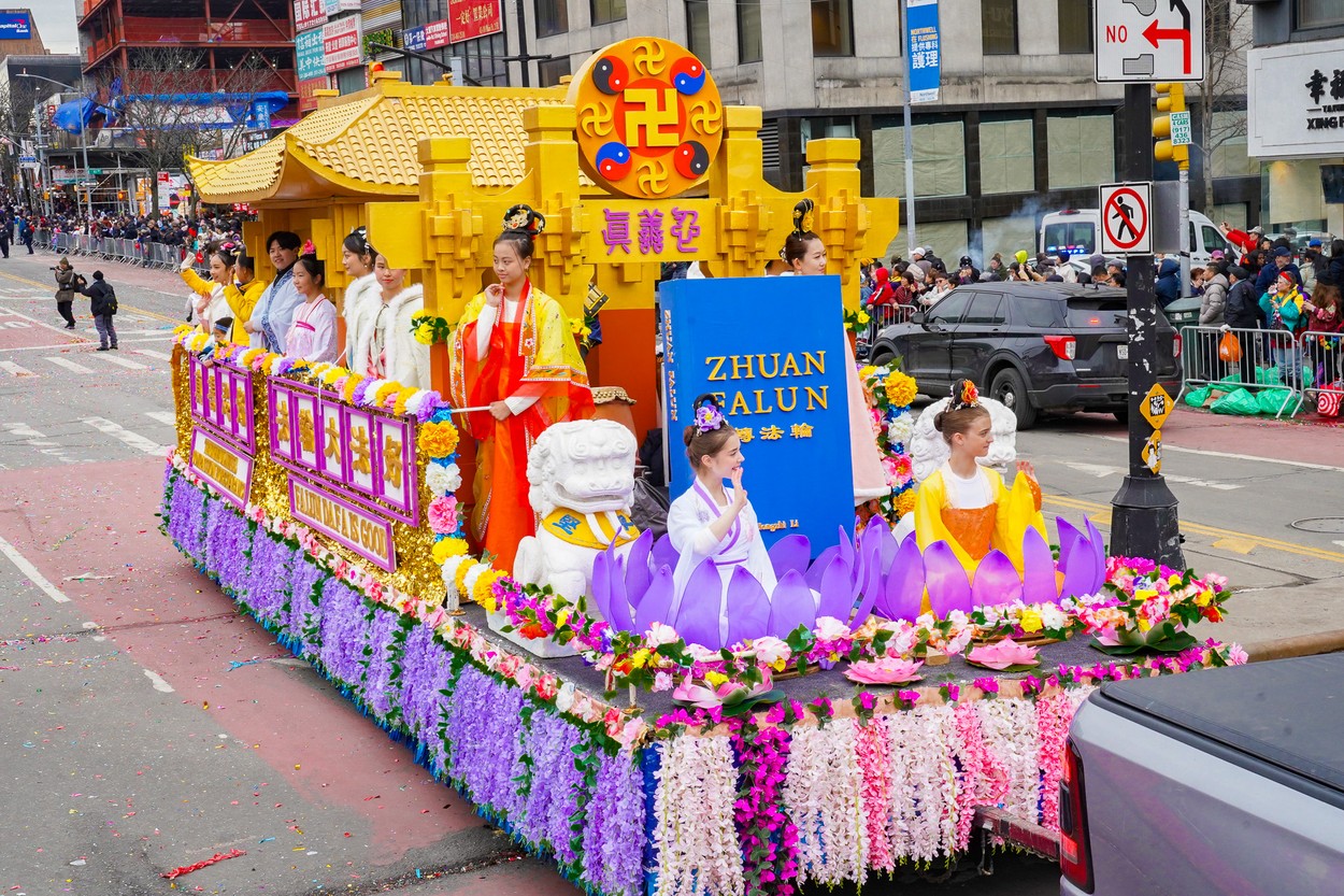 2026年2月21日丙午马年大年初五,法轮功学员参加纽约法拉盛中国新年游行,带去美好和祝福。图为“天宫仙境”花车。(张静怡/大纪元)