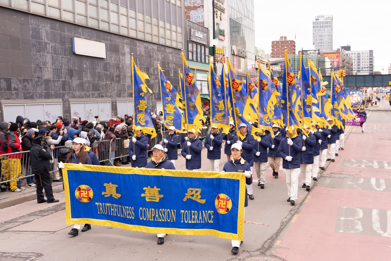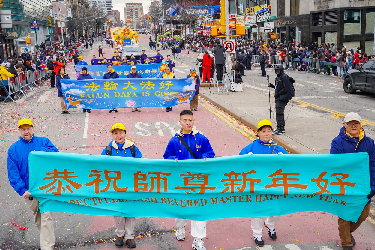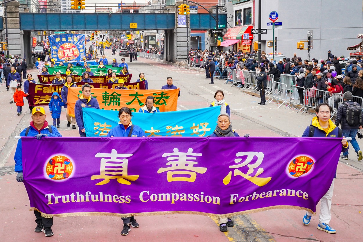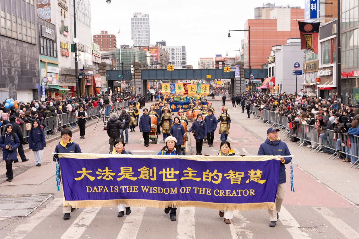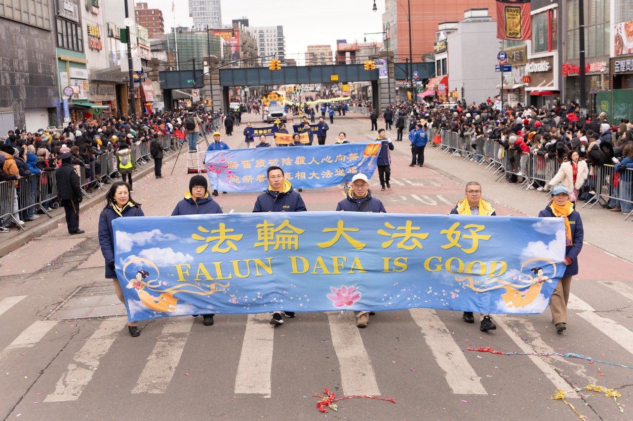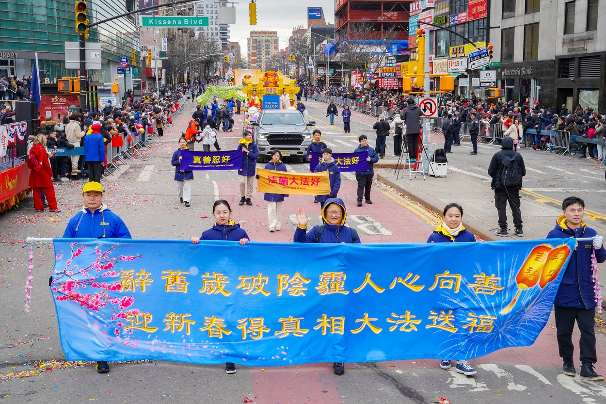 2026年2月21日丙午马年大年初五,法轮功学员参加纽约法拉盛中国新年游行,带去美好和祝福。(张静怡/大纪元)