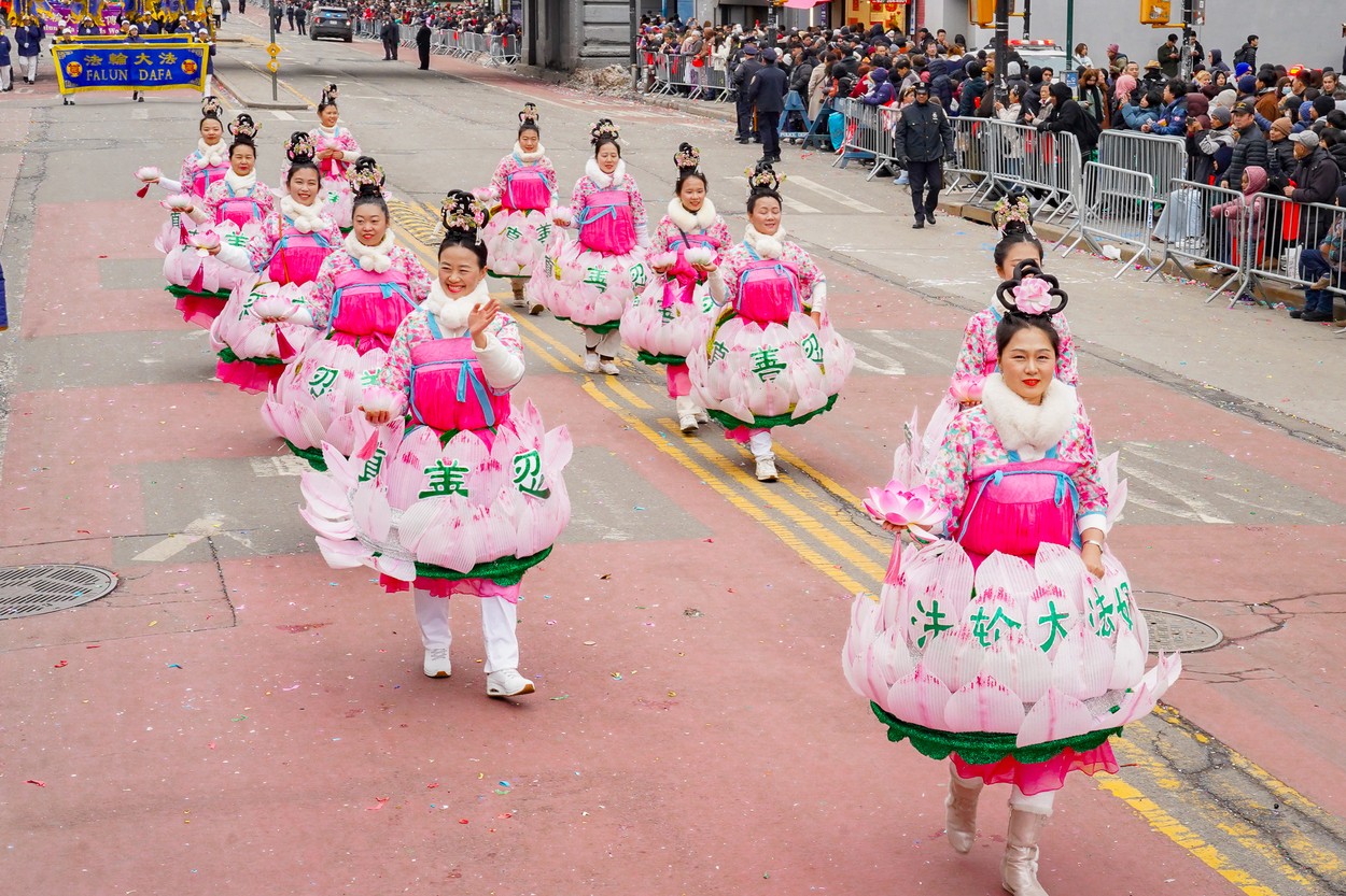 2026年2月21日丙午马年大年初五,法轮功学员参加纽约法拉盛中国新年游行,带去美好和祝福。图为莲花舞蹈队。(张静怡/大纪元)