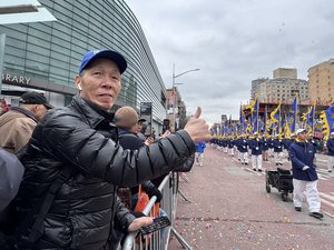华人杜海荣看到法轮功队伍出现后,眼睛湿润了。他激动地说:“非常雄壮!非常震撼!我每年最期待的就是法轮功的队伍!” “法轮功最大的功德就是揭露真相,传播真相。”杜海荣说:“法轮功说的都是人民的心里话,他们这么多年传播真相,传播美好,我很佩服法轮功学员,我想我以后也会成为这样的人。实际上,信仰自由、精神自由是最重要的!” “希望法轮功回到中国游行!” 华人杨磊表示:“法轮功是一种宗教,是一种信仰,像这样的游行就是美国自由、民主的象征;在中国没有这样的自由,很多中国人都没有参加过游行;希望有一天法轮功回到中国游行!” 华人许建康表示:“法轮功队伍气势磅礴,希望在中国,也有这样的游行,希望中国人有自由、尊严和人权;希望有一天法轮功学员回到中国大陆,法轮功继续发扬光大!”