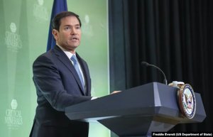 盧比奧國務卿在美國國務院就關鍵礦產部長會議同新聞媒體交談。(2026年2月4日)