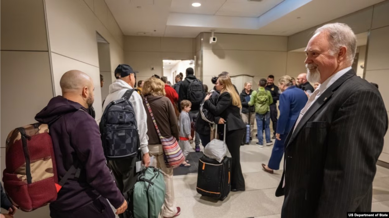 美国国务院2026年3月10日公布的照片显示副国务卿埃文斯欢迎驻中东部分地区的美国外交官和其他雇员及其家属返回美国。