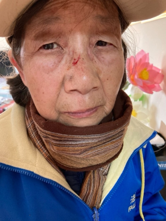 2026年3月25日下午3時45分左右,73歲的法輪功學員、全球退黨服務中心義工呂安敏,在紐約法拉盛街頭被歹徒推倒後擊打頭部數下受傷。(全球退黨服務中心提供)