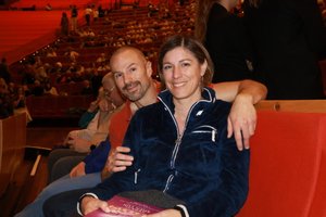 2026年4月12日下午,Arnaud Real先生与Cécile在里昂国际城圆形剧场(L’Amphithéâtre 3000)观看了神韵演出。(张妮/大纪元)