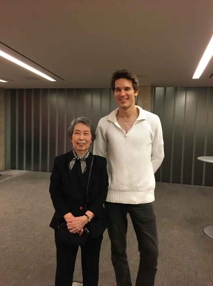 新唐人钢琴大赛评委主席姚教授与第五届冠军Vladimir Petrov于2024年第七届比赛期间合影。(新唐人)
