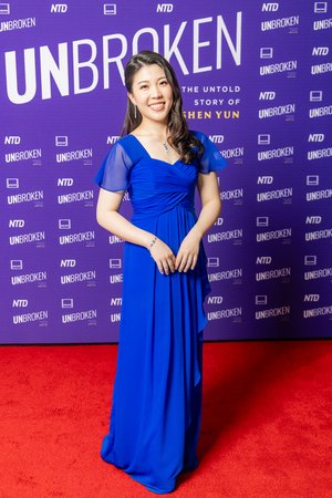2026年4月22日晚间,纪录片《坚不可摧》于多伦多举行盛大的红毯首映。片中人物之一、神韵艺术团中提琴演奏家陈丹蕾(Rachel Chen)出席首映式。(艾文/大纪元)