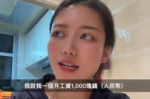 這名女博主說,她每月工資只有1,000元人民幣。(視頻截圖)